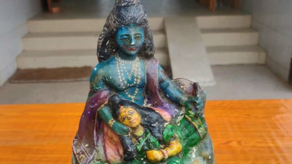 নওগাঁর মহাদেবপুরে পুকুর খননের সময় উদ্ধার প্রাচীন কষ্টিপাথরের রাধাকৃষ্ণের মূর্তি